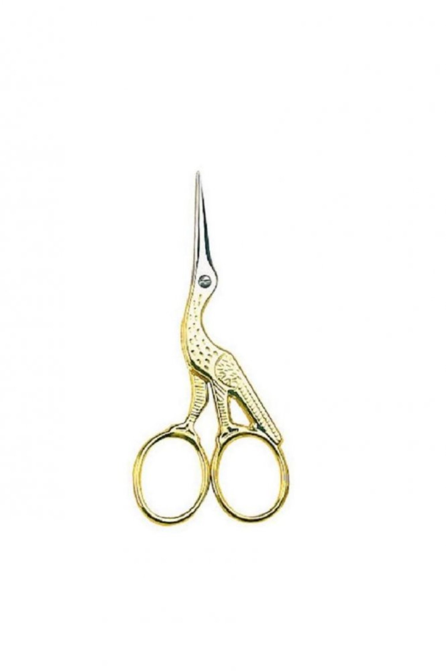Tijeras en forma de cigüeña de cuerpo dorado y pico plateado.  Resistentes y de gran durabilidad,con ellas conseguirás cortes precisos.